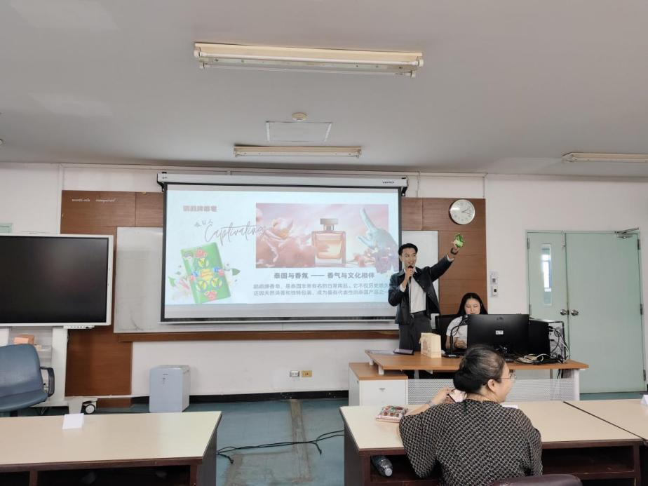 The opening remarks were delivered by Ms. Gu Mengyu from the Department of Chinese Language, Faculty of Humanities at Chiang Mai University, who warmly welcomed the Guangxi delegation and highlighted the geographic and cultural ties between the two countries. She expressed hope that the academic dialogue would help young people from both universities deepen mutual understanding and serve as a bridge of China-Thailand friendship. This was followed by Mr. Li Xiongying, Associate Dean of CAMT, who emphasized the importance of the “product + culture” collaboration model in enabling students to showcase professional competence while also exploring the cultural heritage behind local products.