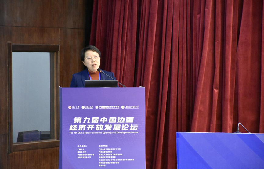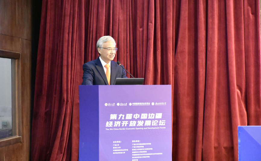 Li Guanghui, Dean of the Guangxi University China Border Economic Research Institute, delivers a keynote report