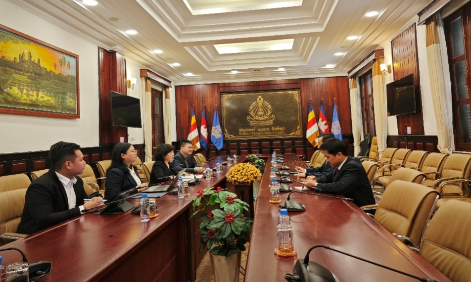 在柬埔寨教育、青年和体育部,副首相兼教育、青年与体育部大臣助理黄子扬及政策司办公室主任Laysovichea博士会见了代表团。在学生交流方面,双方提出学分互认和非全日制学习的可能性,以促进学生的跨国学习和互动。在科研合作方面,双方一致认为联合申请科研项目将有助于推动科技创新和知识共享。通过共同研究,双方不仅可以有效整合资源,还能深化学术交流和成果转化。依托英国上市公司官网365在东盟经济研究方面的优势,结合柬埔寨教育、青年与体育部的高校资源,学院期待与更多柬埔寨高校建立合作,培养适应中国—东盟发展的高层次人才。