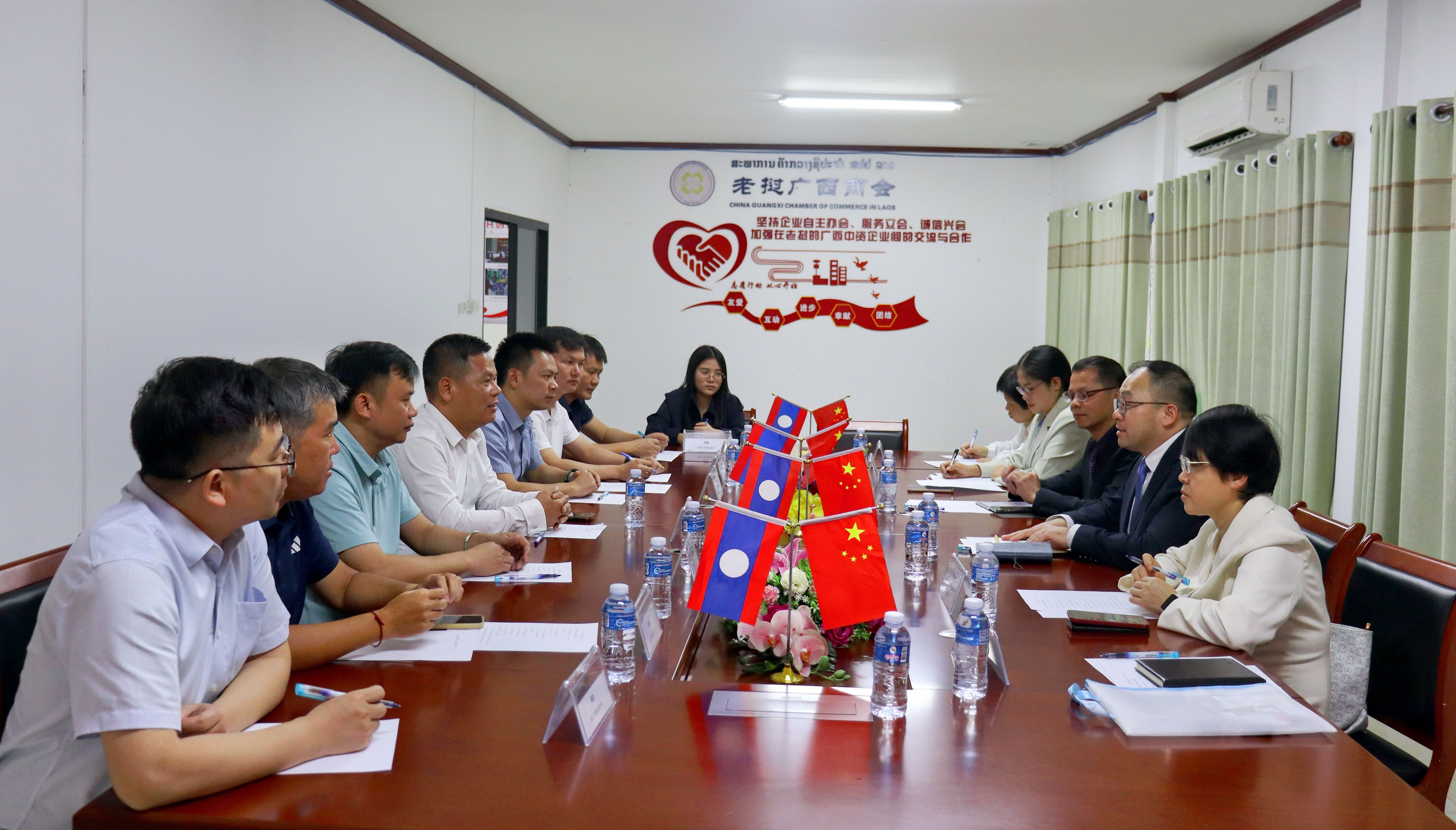 随后,代表团拜访了老挝广西商会,与秘书长陈杭、副会长许峰等围绕老挝与广西在农业、教育、能源、基建等领域合作的现状与挑战开展了深入交流,双方还就中国(广西)—东盟标准化联合研究(老挝农业)、中老人才流动和文化互信,以及具体利用中老铁路降低贸易物流成本和提升跨境交易支付效率等进行了开放性研讨。