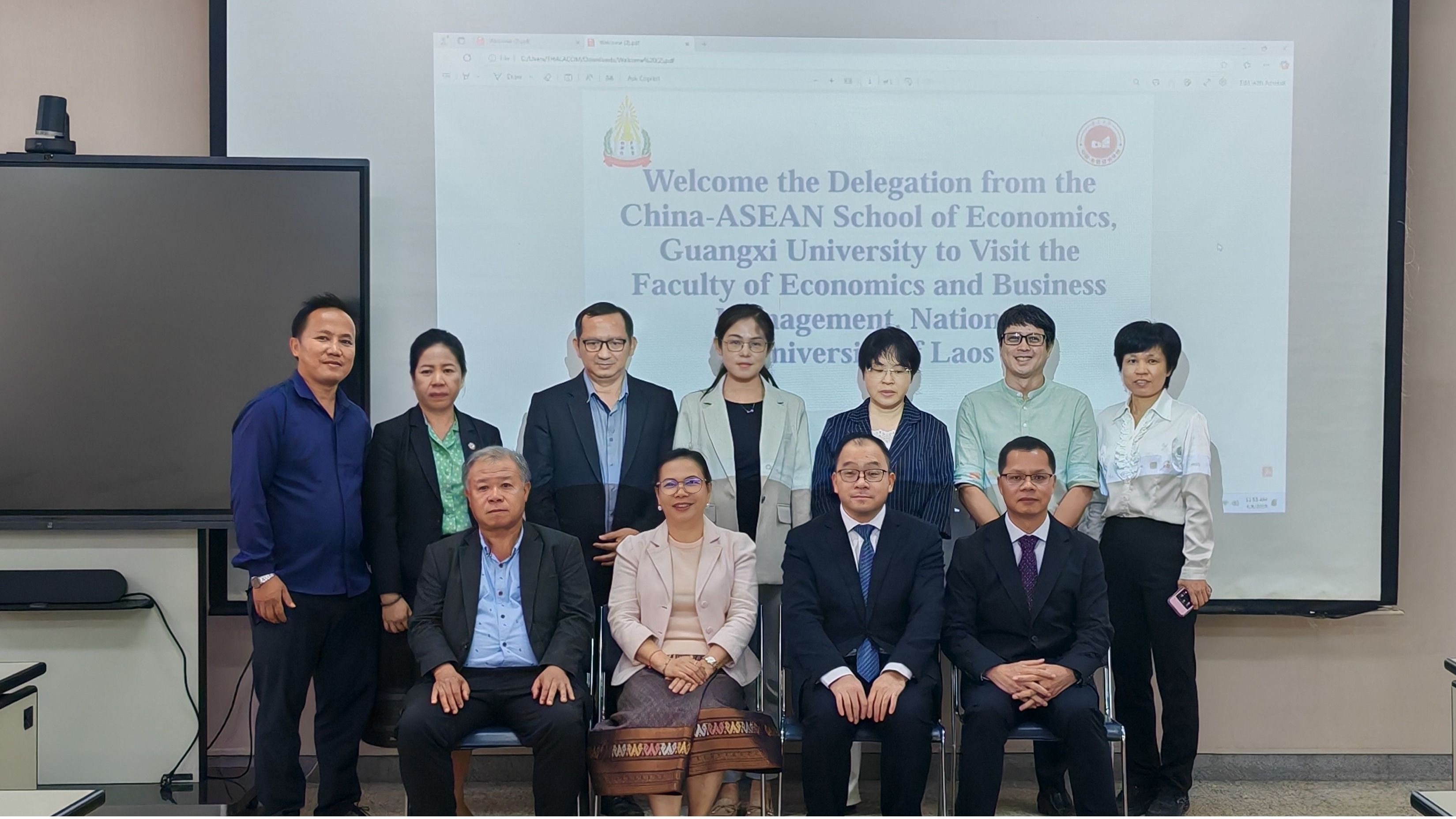 随后,代表团拜访了老挝国家社会与经济科学院。党组成员、科研管理办公室主任赛康·沃拉德、社会经济政策研究所所长吴莎万·天特翁萨、企业发展研究所所长金纳隆·菲玛冯对代表团的到来表示热烈欢迎,表达了希望与中国高校合作开展人才培训和智库研究的强烈愿望。罗诚在座谈中详细介绍了学院面向东盟智库研究方面的团队力量、现有平台和丰硕成果,强调建设中国—东盟研究特色智库和中国—东盟信息交流中心是学院的重要目标,期待加强智库研究合作,实现共赢发展。双方聚焦高端人才培训、中国—老挝区域国别研究基地建设、中国—老挝经济研究合作、信息共享平台搭建和东盟专家师资引入等议题,希望尽快签署合作备忘录,推动合作落地。