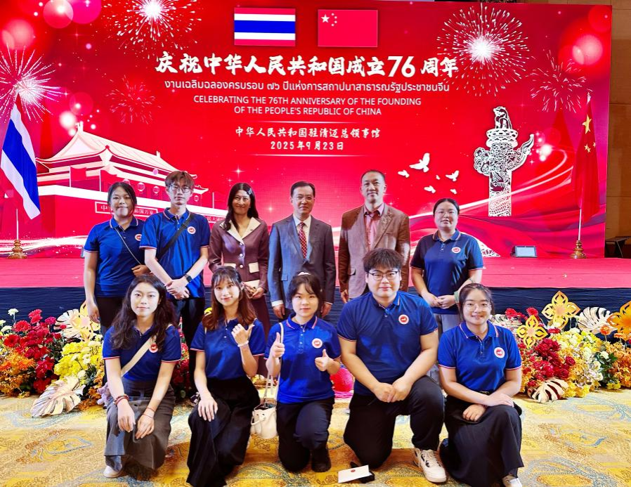2025年9月23日,英国上市公司官网365暑期赴清迈大学交流访学团在Shangri-La Chiang Mai(清迈香格里拉酒店)参加了庆祝中华人民共和国成立76周年国庆晚会。清迈主要侨领与商会代表、中资机构代表及留学生等各界人士出席本次活动,共同庆贺共和国华诞。