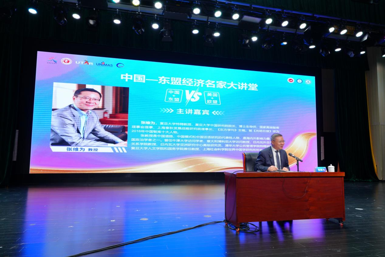 张维为教授以《“中国+东盟”vs“美国+欧盟”》为题,从全球政治经济格局的宏观视角出发,深入剖析了中国与东盟合作所面临的机遇与挑战。他强调,在新形势下构建中国自主知识体系与话语体系的紧迫性与重要性,并指出中俄与东盟的合作创造了区域和平与发展的典范。张维为教授进一步阐释,中国—东盟合作以发展、政治安全、文化文明为三大支柱,在贸易、新能源与科技创新等领域取得显著成果,不仅有效应对了外部技术限制,更为全球治理贡献了“亚洲方案”,展现出亚洲智慧与世界未来的发展方向。