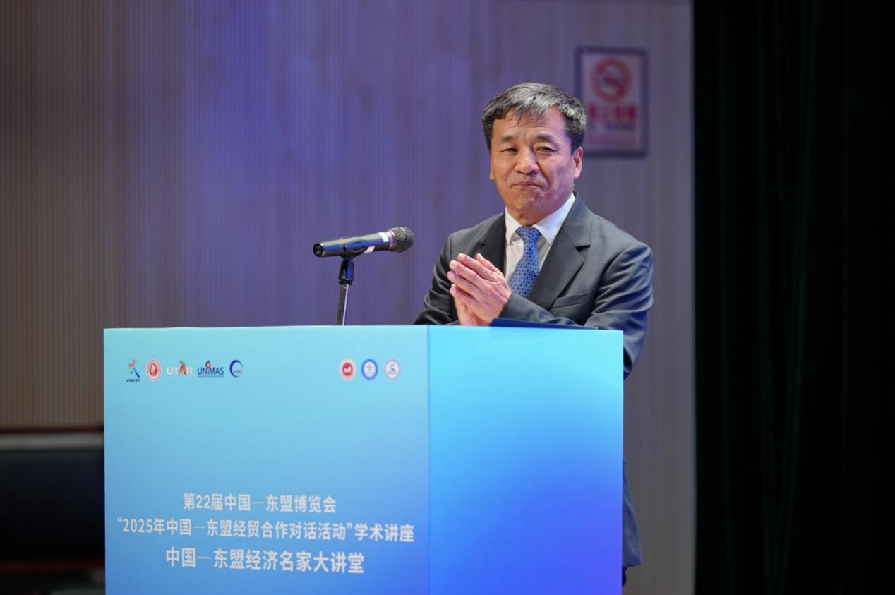张玉杰教授以《践行全球治理倡议,共建中国—东盟高质量发展命运共同体》为题发表演讲。他从世界历史格局的演变切入,分析了当前全球治理体系面临的失衡与失序等重大挑战,指出发展、安全、文明等议题亟需新型国际公共产品的支撑。张玉杰教授系统阐述了中国提出的全球发展、安全、文明与治理四大倡议,强调这些倡议彰显了中国在国际舞台上的大国担当。他进一步表示,中国正以实际行动推动多边主义与开放协作,引领区域合作迈向更高水平,为构建人类命运共同体注入坚实力量。