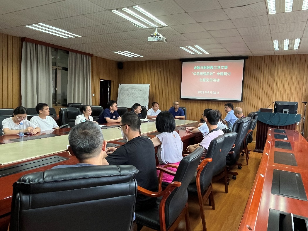为全面推进课程思政建设,切实将学习贯彻习近平新时代中国特色社会主义思想主题教育与教学科研深度融合,强化党建引领高质量的人才培养,将“全员、全程、全课程”的育人工作格局落到实处,9月26日下午,经济学院/中国-东盟金融合作学院教工金融与财政党支部在MBA大楼316会议室开展了“学思想 强思政”专题研讨主题党日活动。研讨活动由支部书记陈新建主持,学院副院长谭春枝教授、副院长梁权熙教授、支部全体党员和部分非党员教师参加了研讨活动。