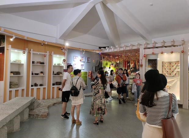 7月16日,实践团成员在当地市府办林副主任等六位领导的带领下前往旧州古镇与鹅泉景区调研。在景区内,实践团成员发现在疫情影响下景区内的商户多数已经将铺面转租,留在景区内的商户表示疫情对于他们的经营冲击影响很大,当地著名绣球手工艺人也已不在景区,因此此次调研未能得见,略有遗憾。实践团还参观了景区内的壮族生态博物馆,见识到了壮族传统织布机、成品布匹等,实践团成员都被特色工艺所惊艳。