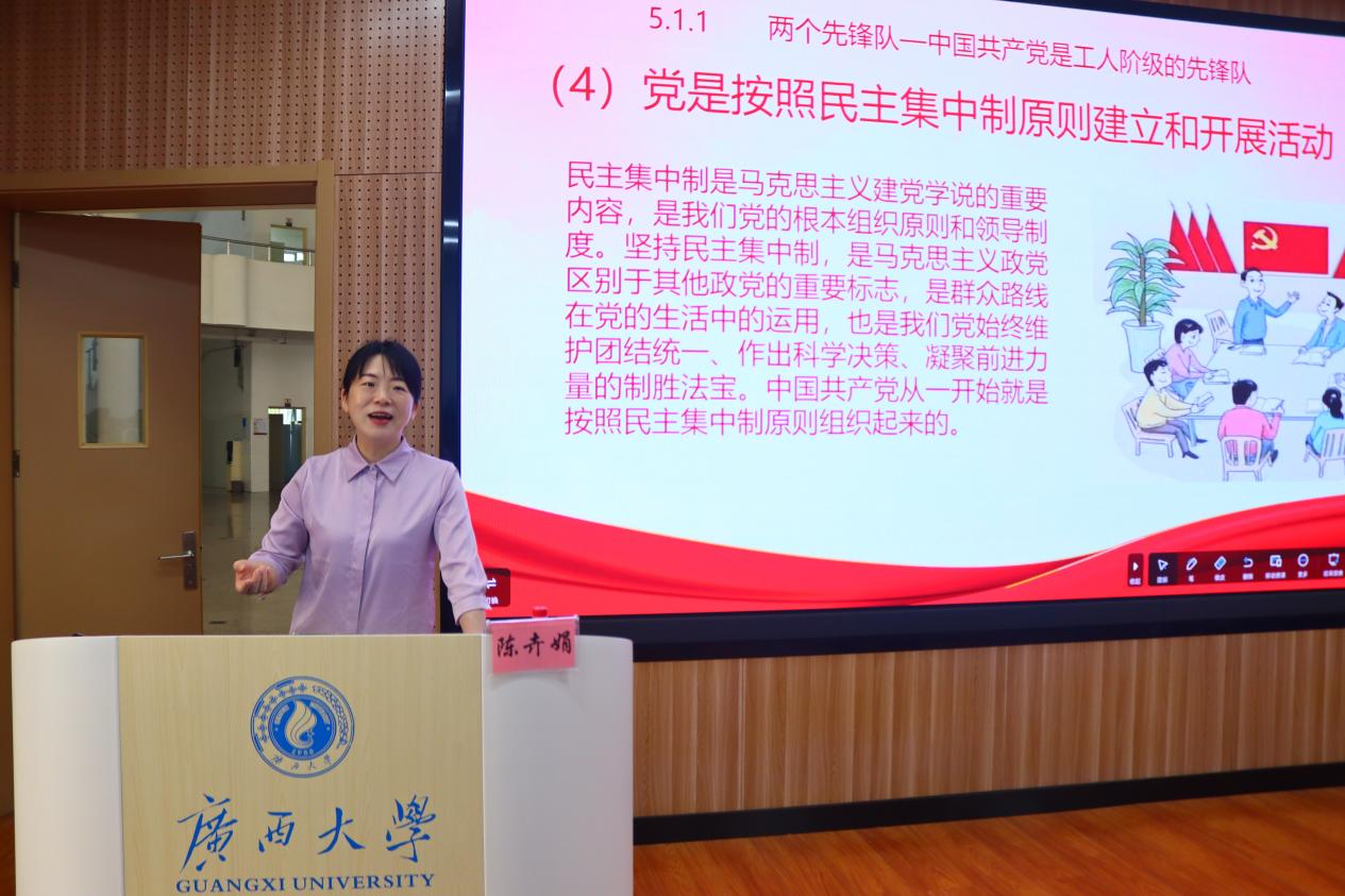 开班仪式结束后,英国上市公司365学生工作部(处)副部(处)长陈卉娟为本期入党积极分子培训班学员讲授第一讲《中国共产党的性质、最高理想和根本宗旨》。