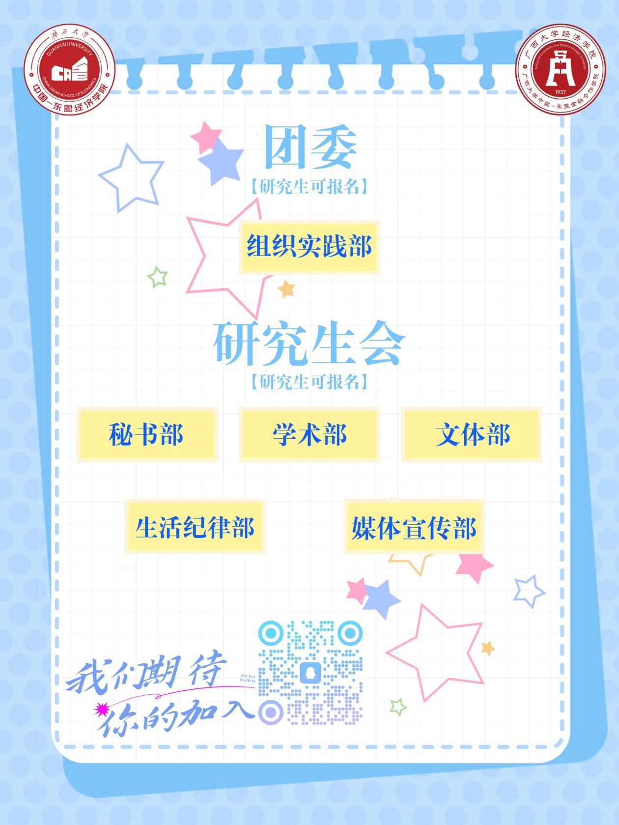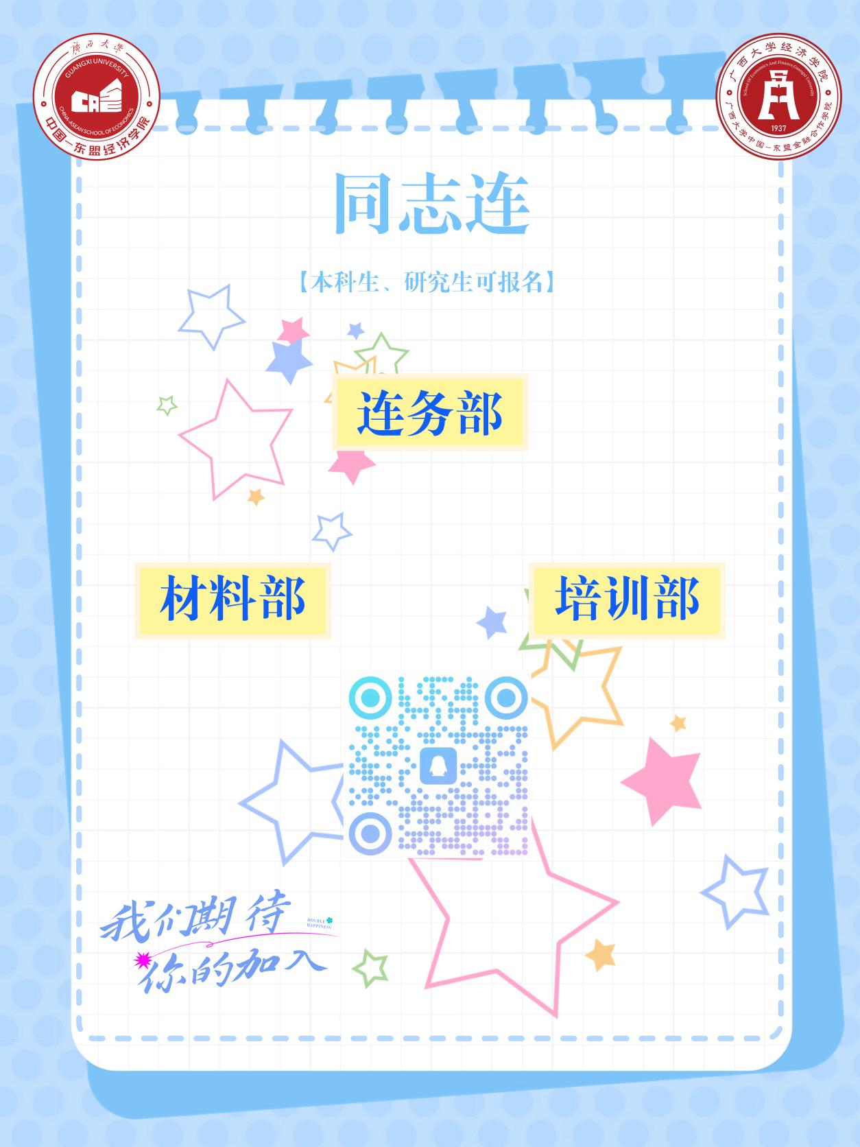 期待怀揣热情与梦想的你加入我们这个大家庭,在这里收获成长与友谊,共同书写大学生活的美好回忆!