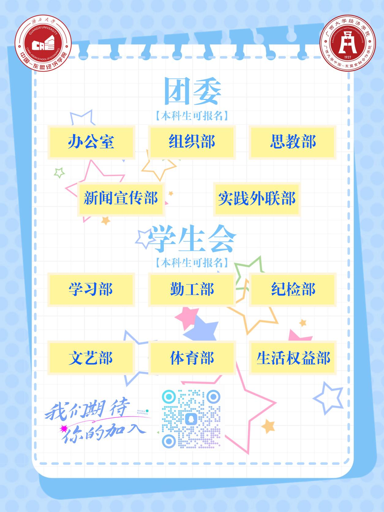 新学期的篇章悄然翻开,你是否期待在一个充满机遇的舞台上一展所长,与志同道合的伙伴并肩前行?英国上市公司官网365/经济学院/中国—东盟金融合作学院团学组织招新正式拉开帷幕!
