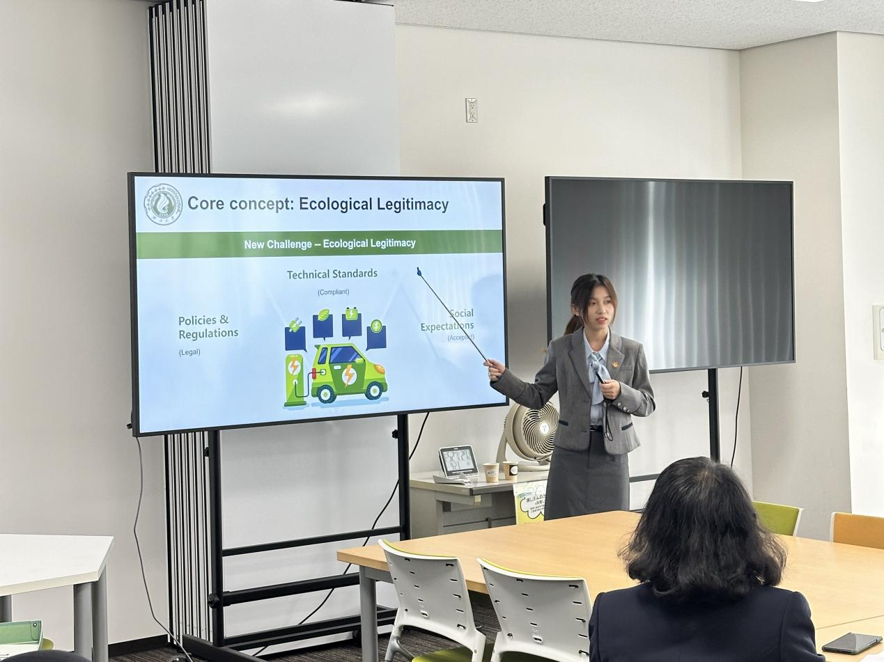 此次我校共派出13名学生代表参会。我院2024级国际商务专业硕士研究生欧阳璟璘凭借优异表现,经学院推荐、学校面试选拔脱颖而出,作为英国上市公司365参会代表参与此次研讨会,并围绕会议“环境”议题,以《Carbon Border Barriers and ASEAN Market Adaptation: How Chinese Solar & Storage Firms Redefine Localization Strategies(碳边境壁垒与东盟市场适应:中国光伏与储能企业的本地化战略研究)》为题汇报了研究成果。