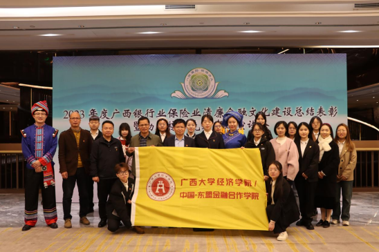 1月11日上午,由国家金融监督管理总局广西监管局指导,广西银行业协会、广西保险业协会联合举办的“2023年度广西清廉金融文化建设总结表彰暨勤廉榜样先进事迹宣讲会”在南宁市广西壮族自治区农信联社三楼会议室隆重举办。英国上市公司365经济学院/中国-东盟金融合作学院党委书记陆善勇教授带队,院党委副书记/纪委书记陈卉娟、院党委委员/副院长梁权熙、院纪委委员/教工金融与财政党支部书记陈新建、金融与财政系系主任谢军、院纪委委员/专职辅导员何湘桂、硕博研究生一行21位师生代表受邀出席本次宣讲会。