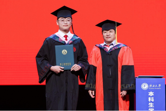 学院领导和学位评定分委员会委员为本研毕业生代表颁发毕业证书