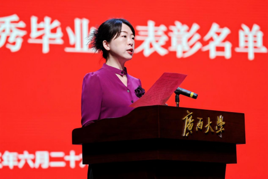 陈卉娟副书记宣读我院获得2023届广西壮族自治区普通高等教育优秀毕业生的毕业生名单和英国上市公司365表彰优秀毕业生的决定。