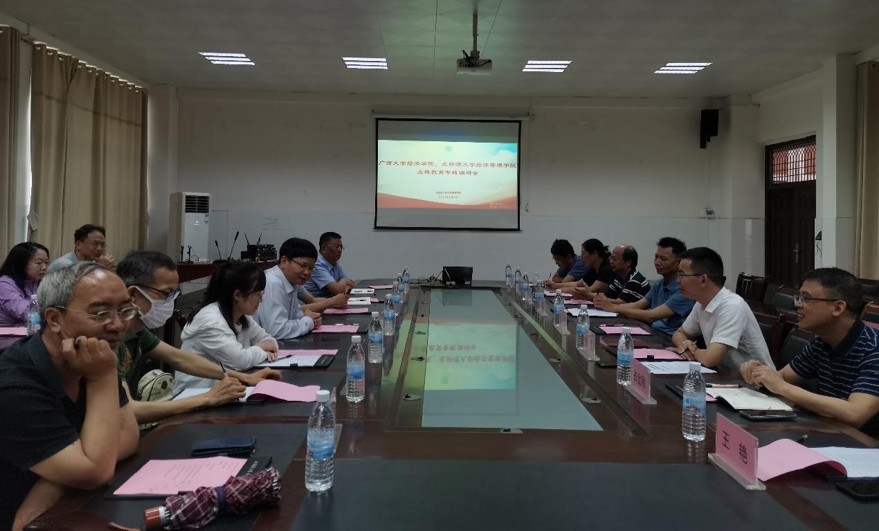 6月8日上午,调研组来到北部湾大学经济管理学院,北部湾大学经济管理学院院长朱念、党委副书记覃志武及相关系部负责人对调研组一行表示欢迎。朱念院长介绍了北部湾大学经济管理学院的发展历程、专业建设等情况,陆善勇书记介绍了我院党建引领学科专业发展的经验。随后,双方就党建促进学科专业建设、教师队伍建设、一流课程建设等方面进行了深入交流,分享相关经验。