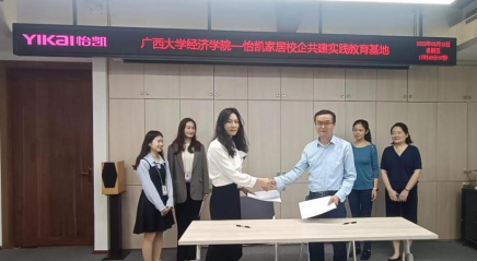 2023年5月12日下午,我院与广西怡凯家居用品有限公司举行校企“实践教育基地”签约暨揭牌仪式。我院国贸系樊凡教授、刘主光教授、韦倩青教授及国贸系教师一行5人参加活动。