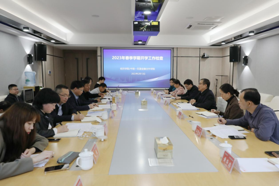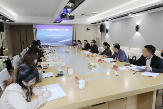 韩林海校长听取汇报后,认为学院开学工作扎实,能够做到心里有数,教学支撑设施、课程安排等工作细致到位,对学科发展的思考深入全面,既关注宏观又着眼具体,可操作性强,他对学院当前工作和开学准备情况给予高度肯定,并从以下3个方面对学院工作进行了指导:第一,安全稳定是发展一切的基础,要把安全稳定的意识牢牢把握好、落实好,对可能出现的舆情和风险提前研判,确保学院建设稳步前行;第二,将本科教育教学审核评估作为本学期工作的重中之重,通过审核评估推进德智体美劳“五育并举”人才培养体系建设,进一步夯实三全育人体系;第三,整合资源推进应用经济学一流学科建设,做好顶层设计、全面谋划、分步实施,围绕学科群梳理学科布局和发展方向,立足广西、服务广西、发展广西,彰显特色,建设强有力的学科特色支撑平台和项目,做到有理念、有模式、有验证、有成效、有影响。他希望学院新学期有新作为,担当实干,砥砺拼搏,团结奋进,在本科教学评估、“部区合建”迎检及下一轮学科评估工作中取得好成绩,在本学科发挥引领、带头作用,争创全面一流!