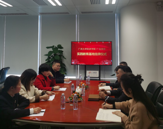1月6日下午,我院副院长谭春枝、金融与财政系主任刘骞文、经济学系主任郭南芸、副主任盛玉雪一行四人赴广发期货有限公司南宁分公司洽谈合作并举行校企共建实践教育基地挂牌仪式。广发期货有限公司南宁分公司总经理罗贤光、总监刘馨等参与座谈。