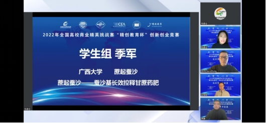 近日,2022年全国高校商业精英挑战赛“精创教育杯”创新创业竞赛全国总决赛(第二阶段)精英赛圆满收官。在学院的大力支持下,在国贸系陈伟宏助理教授和化学化工学院赵钟兴教授的共同指导下,我院“蔗起蚕沙”参赛队积极筹备精英赛,凭借《蔗起蚕沙—蚕沙基长效控释甘蔗药肥》项目的精彩路演与线上答辩,从全国71支入围精英赛的团队中脱颖而出,最终斩获全国总决赛精英赛季军,获得2000元的现金奖励以及水晶奖杯。