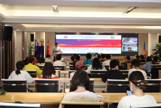 在互动问答环节里,现场的学生们接连对海尼博士进行了系统而深刻的提问,所涉及的问题包括:两国间的经济合作、文莱应对经济变局的各项措施,以及全球环境保护对经济产生的巨大影响等各方各面。现场60多名同学,及线上280名学生及相关人员参加了本次讲座活动,大家表现出了很强的参与热情。 同时,本次活动还得到了区内许多金融机构和企事业单位的大力支持。广西融担集团、南宁五象新区规划管理委员会、进出口银行、工商银行、北部湾银行、国君证券、平安证券、广西农信、中国交通集团、中国化学集团南方公司、浙商中拓集团等多家区内金融机构和国企管理人员在线参加了本次讲座。
