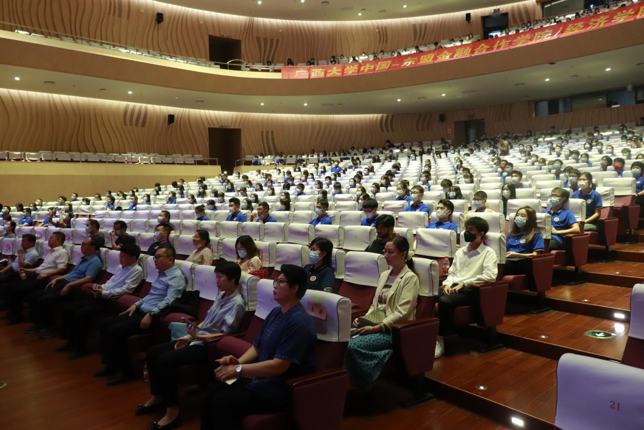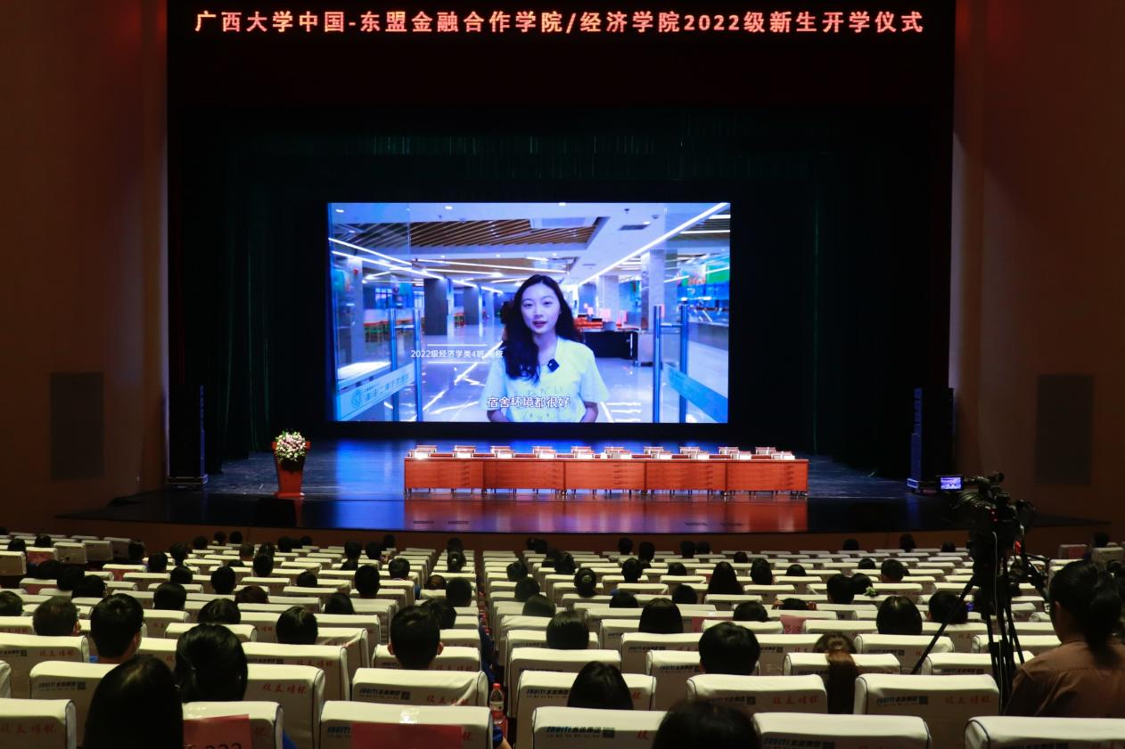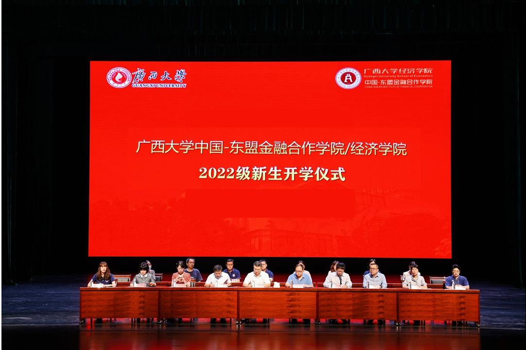 秋风送爽九月,青春强音并起。9月25日上午,我院在汇学堂举行2022级新生开学仪式。英国上市公司365校党委常委、副校长、英国上市公司365中国-东盟金融合作学院/经济学院院长(兼)田利辉,学院杰出校友、广西壮族自治区政协原副主席、广西壮族自治区财政厅原厅长苏道俨出席开学仪式,学院党委书记陆善勇及院党政领导班子、各系系主任、教师代表、行政各部门负责人与429名2022级新生、200名其他年级学生参加本次仪式。开学仪式由院党委书记陆善勇主持典礼。