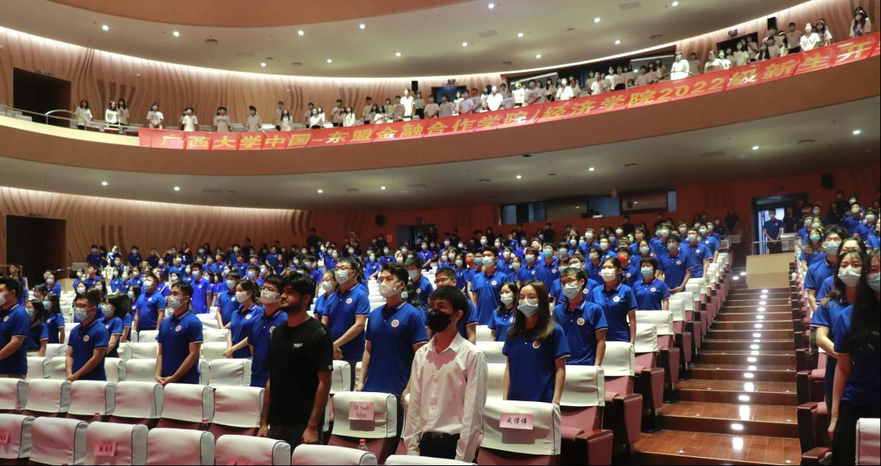 英国上市公司365中国-东盟金融合作学院/经济学院2022级新生开学仪式在全体师生合唱《英国上市公司365校歌》的昂扬旋律中圆满结束。