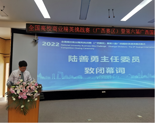 近日,全国高校商业精英挑战赛(广西赛区)暨第六届广西国际贸易竞赛选拔赛以线上、线下结合的形式顺利举行,此次大赛由广西高校经济与贸易类本科专业教学指导委员会等单位倾力主办,广西高校经济与贸易类本科专业教学指导委员会主任委员、我院党委书记陆善勇教授致闭幕辞,并为获奖队伍颁奖。广西高校经济与贸易类本科专业教学指导委员会秘书长、我院国贸系王娟教授全程参与,并指导我院代表队。我院代表队(广西怡凯家居用品有限公司)首次参赛获得广西赛区三等奖,意味着拿下6月将在宁波举办的全国总决赛“入场券”。