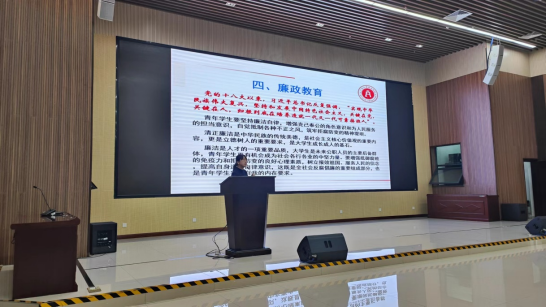 陈副书记强调,清正廉洁是中华民族的传统美德,是社会主义核心价值观的重要内容,更是高校立德树人的重要要求,是大学生成长成人的基石。大学生是未来公职人员的主要后备群体,青年学生更有机会成为社会各行各业的中坚力量。要增强抵御腐败的免疫力和拒腐防变的良好心理素质,树立报效祖国、服务人民的信念,提高自身道德自律意识,这既是全社会反腐倡廉的重要组成部分,也是青年学生实现自我的内在要求。她从守住政治关、权力关、交往关、诚信关、纪律关5个方面讲述了清正廉洁的主要内容,要求我院毕业生从强化思想引领、彰显廉洁本色,夯实思想根基、树立廉洁理念,投身廉政实践、弘扬廉洁风尚3个角度践行廉政之道。