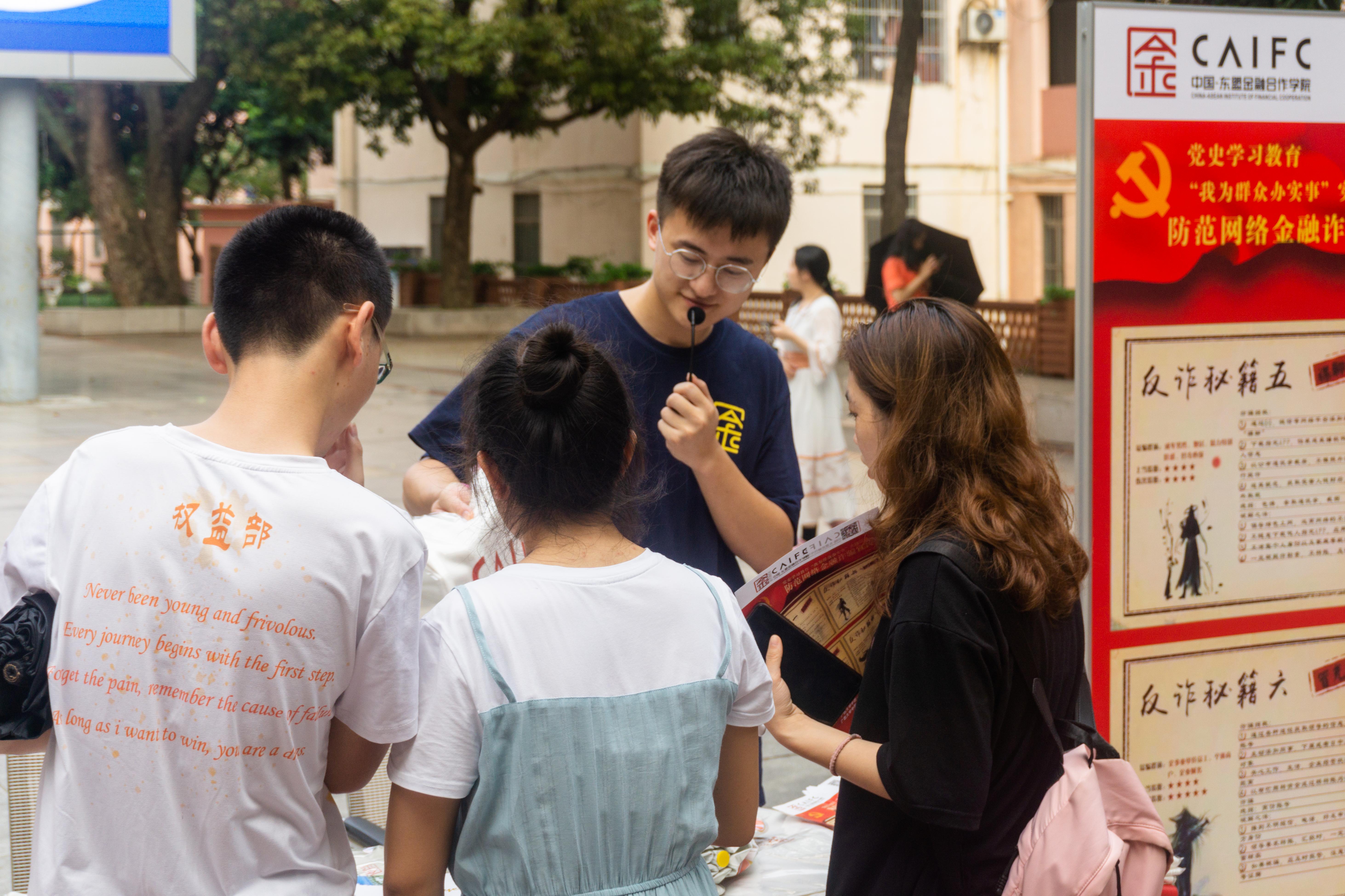 为进一步扩大反诈宣传覆盖面,提高大学生群体的防骗意识。在学院党总支的指导下,东金院学生党支部、研究生会于5月19日下午在英国上市公司365西校园6B广场联合开展了党史学习教育“我为群众办实事”之防范网络金融诈骗宣传活动。
