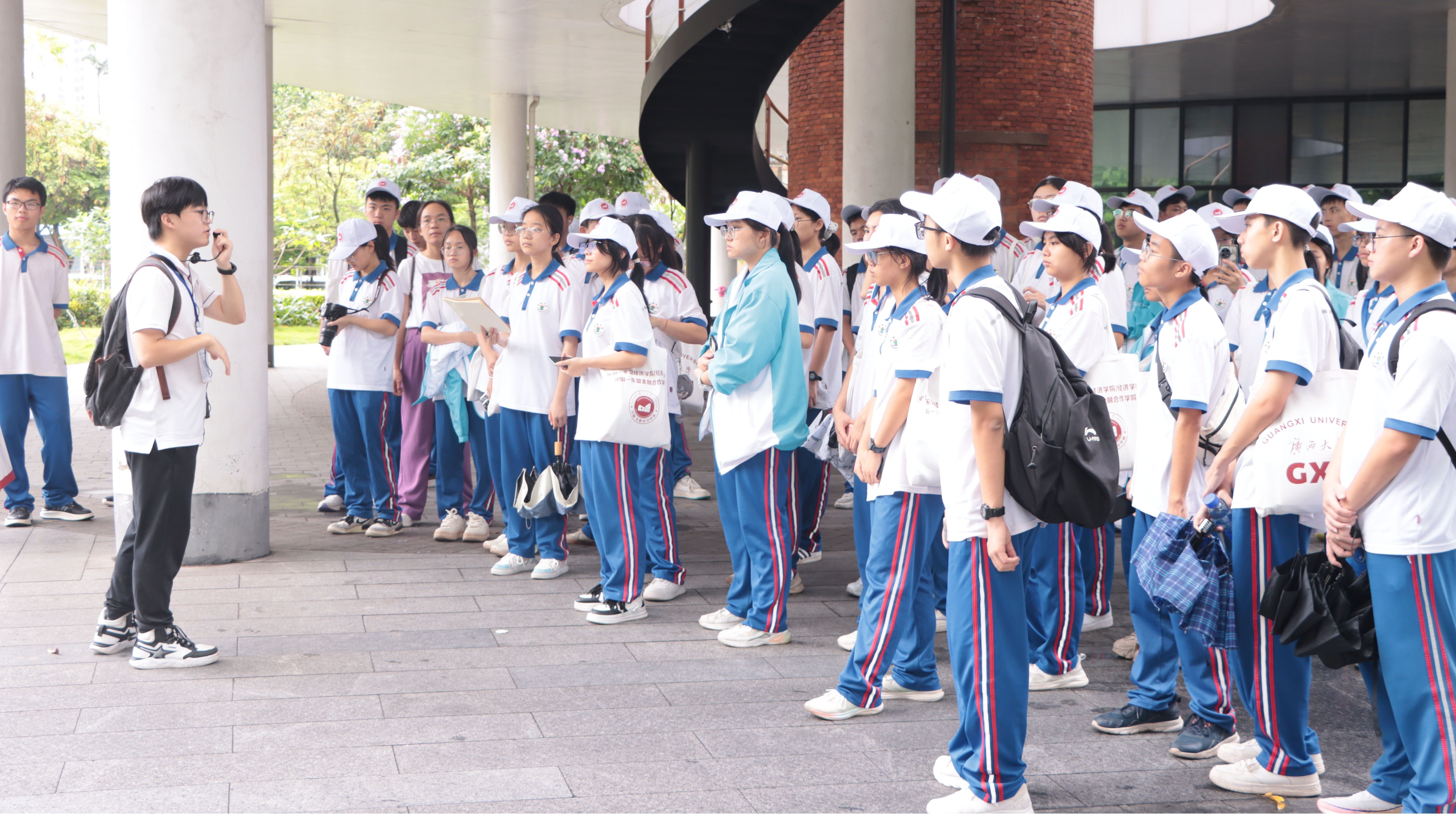 第四站,扶绥中学师生在讲解员和志愿者的引领下,兴致勃勃地开始了大学校园打卡之旅。从宁静致远的东校园到活力四射的西校园,师生依次领略了时光广场的历史韵味,欣赏了碧云湖的自然美景,感受了大学生活动中心和西校园体育馆的青春活力,体验了文创店的创意,参观了威严的汇学堂与大礼堂,感受了综合楼的现代气息,最后沉浸在育才广场的校园氛围中,如画的风景和浓厚的学习氛围让扶绥中学的师生赞不绝口。