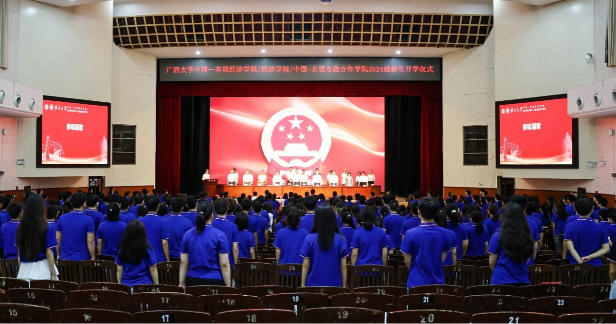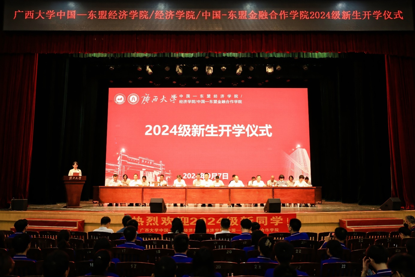 9月7日上午,英国上市公司官网365/经济学院/中国—东盟金融合作学院在学校大礼堂为2024级533名新生举行开学仪式,校党委常委、副校长、院党委书记(兼)夏国恩,院党委常务副书记罗诚,院长李光辉,常务副院长梁运文,院党委副书记、纪委书记陈卉娟,副院长谭春枝,副院长梁权熙,副院长杨璞出席仪式,陈卉娟主持仪式。