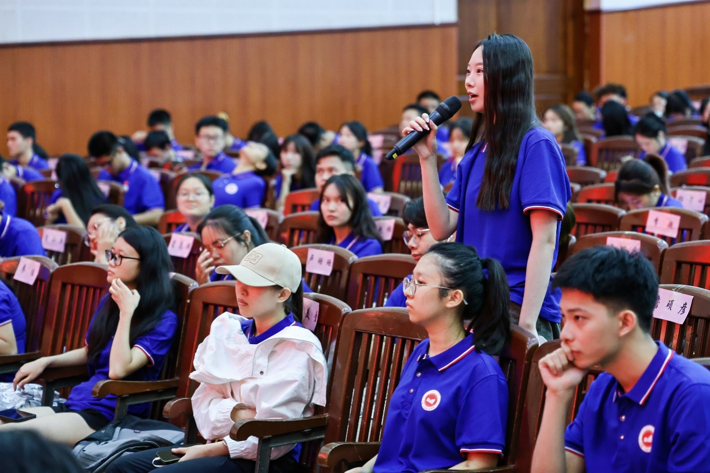 在互动环节,李光辉解答了同学们关于“构建新发展格局实践中,边疆地区在推动国内国际双循环起到何作用”“广西作为中国对东盟开放的重要窗口,在世界经济增速放缓、地缘政治风险上升的背景下,应如何把握机遇,推动区域经济增长”“如何将理论知识运用到实践当中”等问题,与新生进行了近距离的探讨交流。
