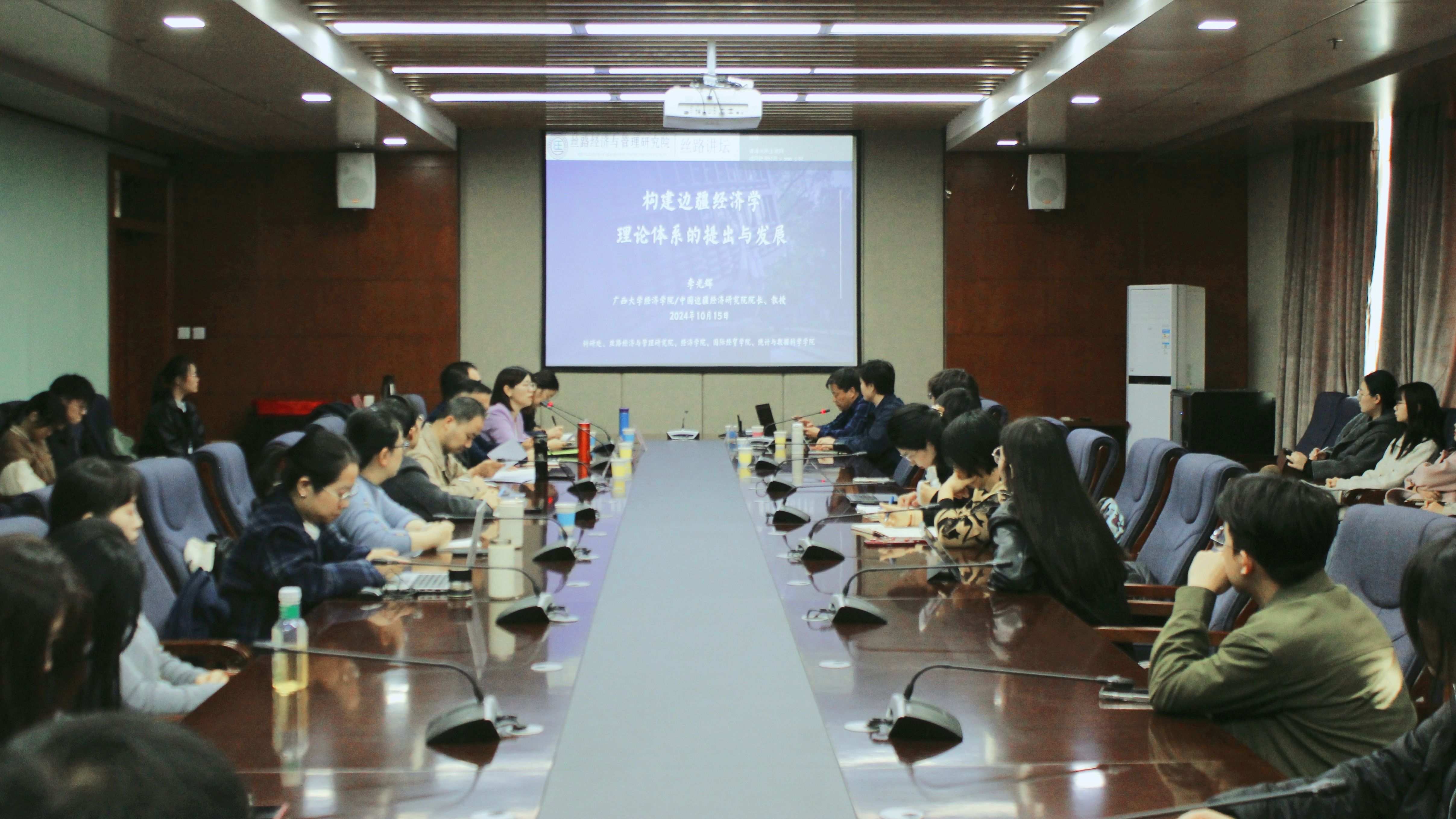 此外,李光辉院长还受邀做客新疆财经大学“丝路讲坛”,为近70名师生作题为《构建边疆经济学理论体系的提出与发展》的专题讲座。