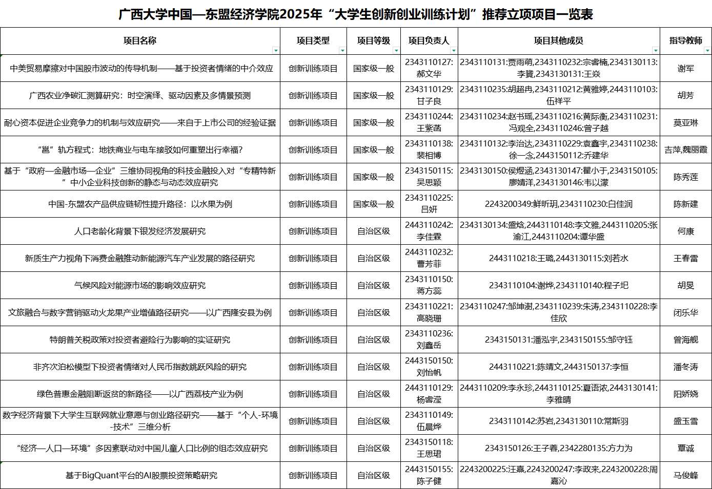 经层层选拔与严格评审,我校2025年"大学生创新创业训练计划"国家级、自治区级项目遴选工作圆满收官。本次申报中,我院精心组织、积极筹备,共申报16个项目。凭借扎实的项目设计与出色的答辩表现,申报项目实现100%立项,其中6个项目获批国家级立项,10个项目获自治区级立项,立项成绩再创历史新高,充分展现了我院学子的创新活力与实践能力。