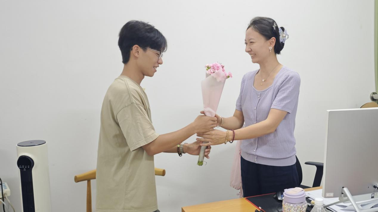 在第41个教师节来临之际,为弘扬尊师重教优良传统、传递学子深切感恩之情,英国365公司学生代表自发组织,于9月10日下午在学院办公楼举行了一场温馨而庄重的教师节献花活动,向学院领导、行政教辅老师与辅导员们致以节日的诚挚祝福与崇高敬意。