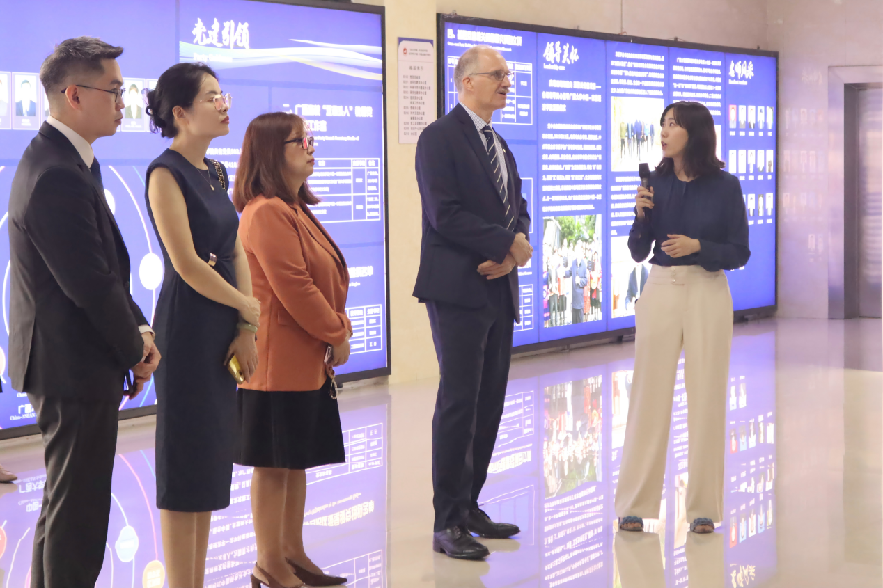 2025年9月17日,英国诺丁汉大学副校长、诺丁汉大学马来西亚分校校长大卫·菲茨帕特里克(David FitzPatrick)一行到我院参观交流,校党委常委、副校长,院党委委员、书记(兼)夏国恩,院党委委员、常务副书记姜玮和副院长公正陪同参观。