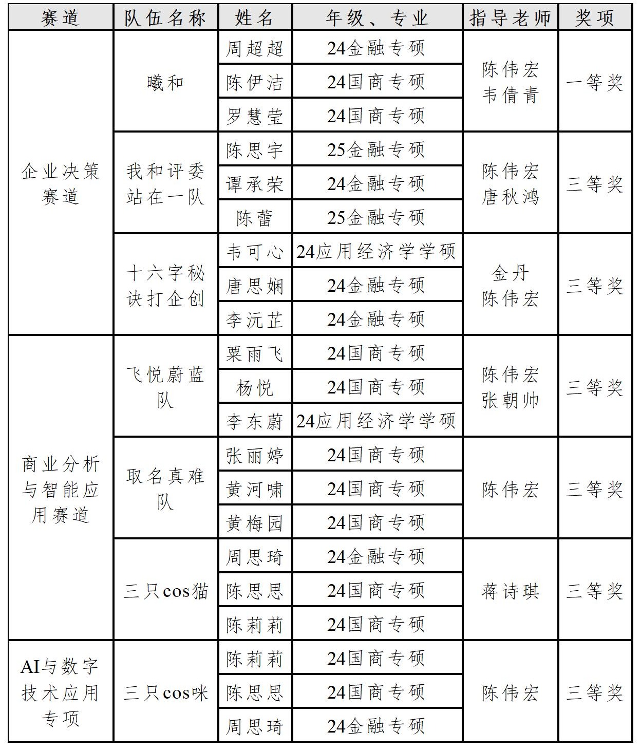 表1:我院获奖队伍成员与指导老师名单