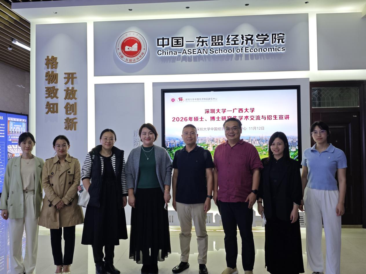 11月12日,深圳大学中国经济特区研究中心一行访问我院,先后举行合作座谈与2026年硕博招生宣讲会,推动两院在学科共建、科研协同与人才共育方面迈出实质性步伐。