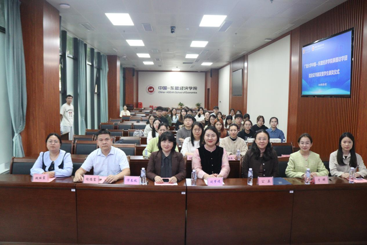 刘梦娟副书记在总结中深情寄语:这张结业证书不仅是一份荣誉,更是一份沉甸甸的责任。希望同学们带着对东盟区域经济的深刻理解,带着“中泰一家亲”的温暖记忆,在更广阔的舞台上书写无愧于时代的青春华章。
