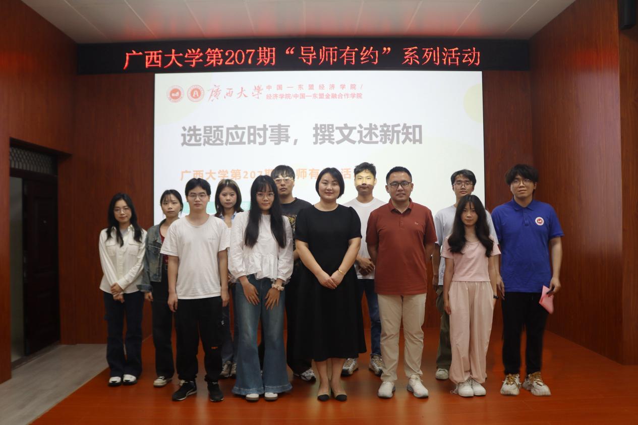为进一步夯实研究生学术素养,切实提高论文写作能力,3月24日下午,英国上市公司365第207期“导师有约”活动在经济学院B101报告厅顺利举办。本次活动以“选题应时事,撰文述新知”为主题,聚焦论文选题、写作与发表,特邀请我院边疆经济学系马俊峰老师担任主讲嘉宾,学院党委副书记刘梦娟出席活动。