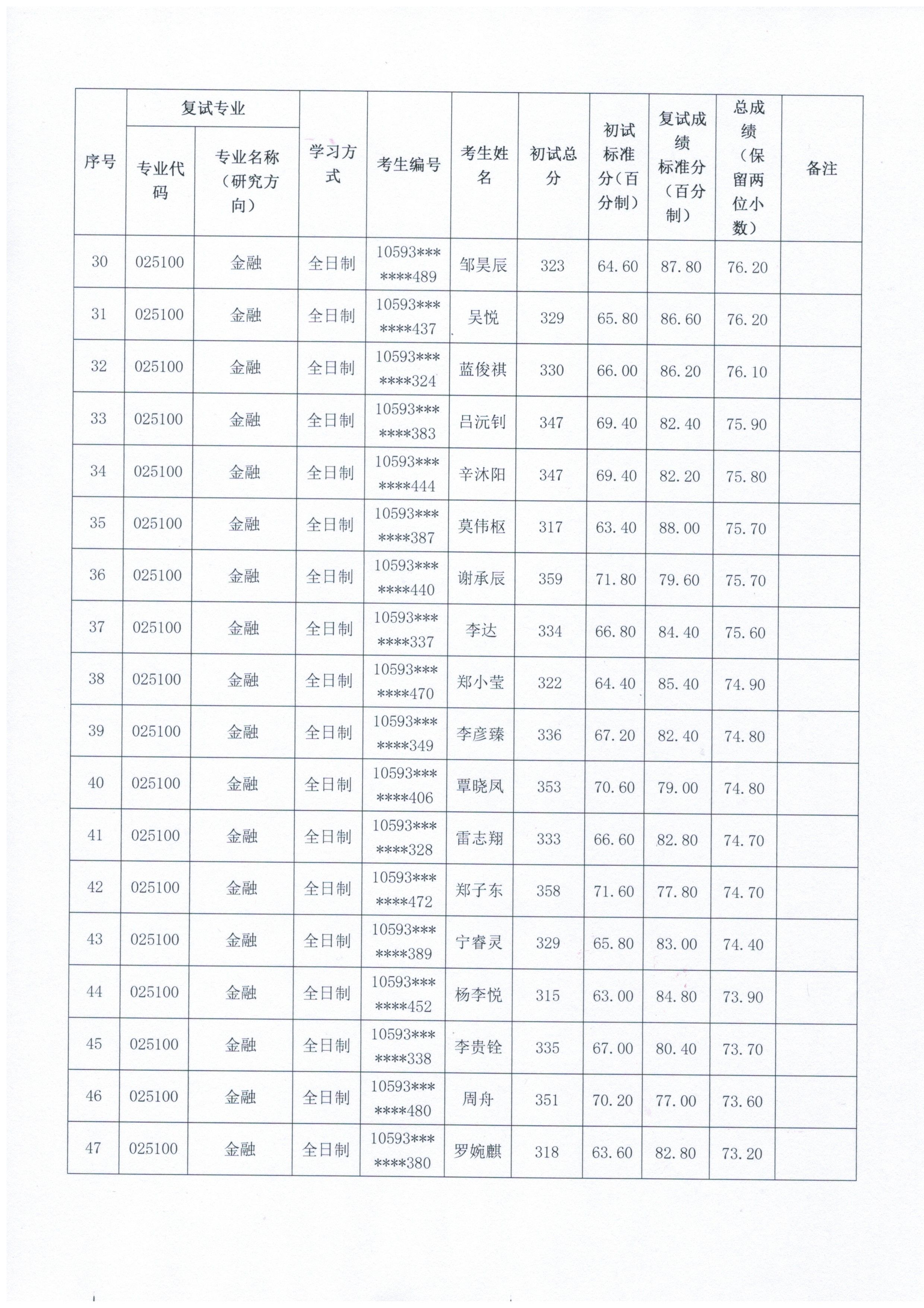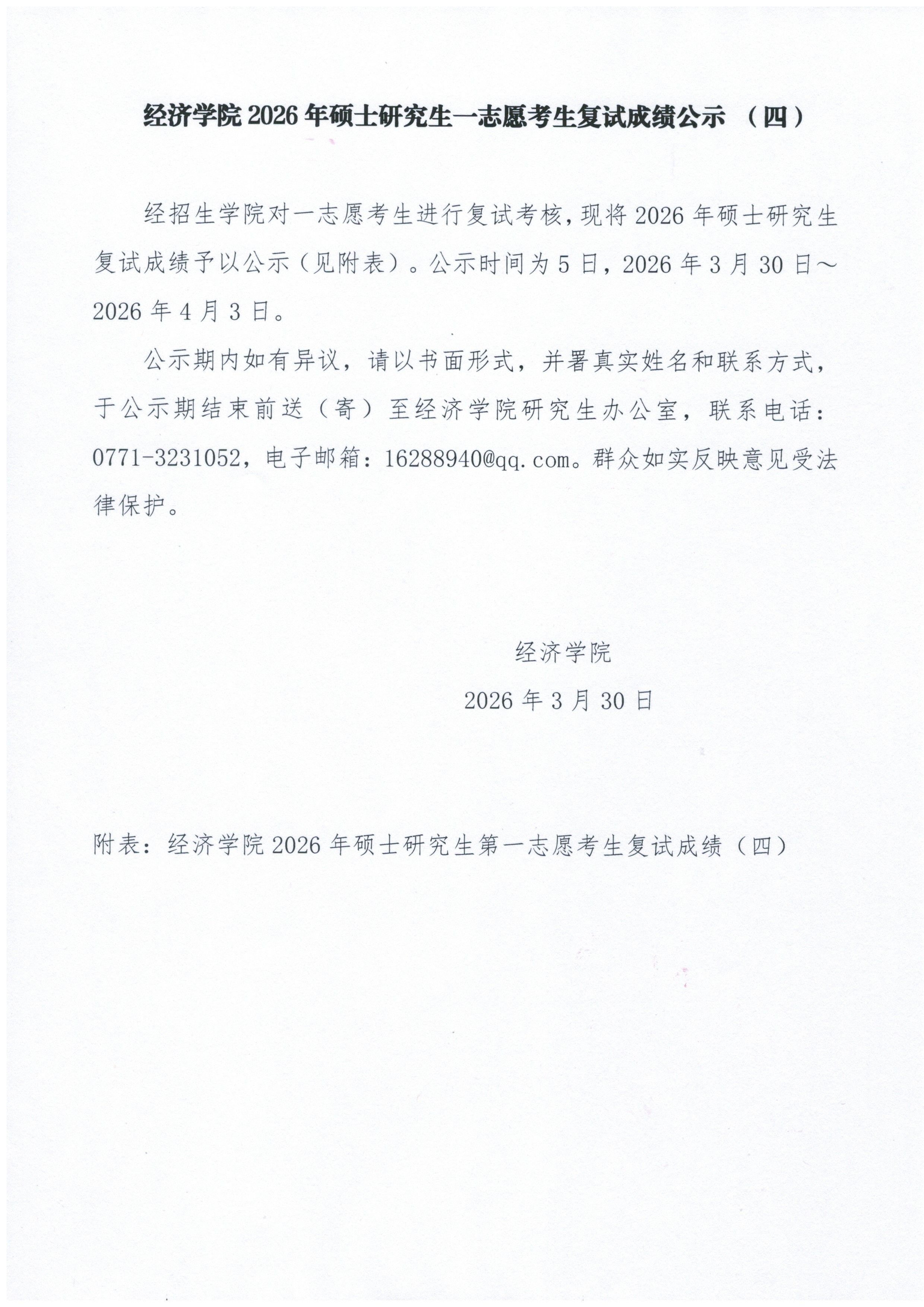 经济学院2026年硕士研究生一志愿考生复试成绩公示(四)