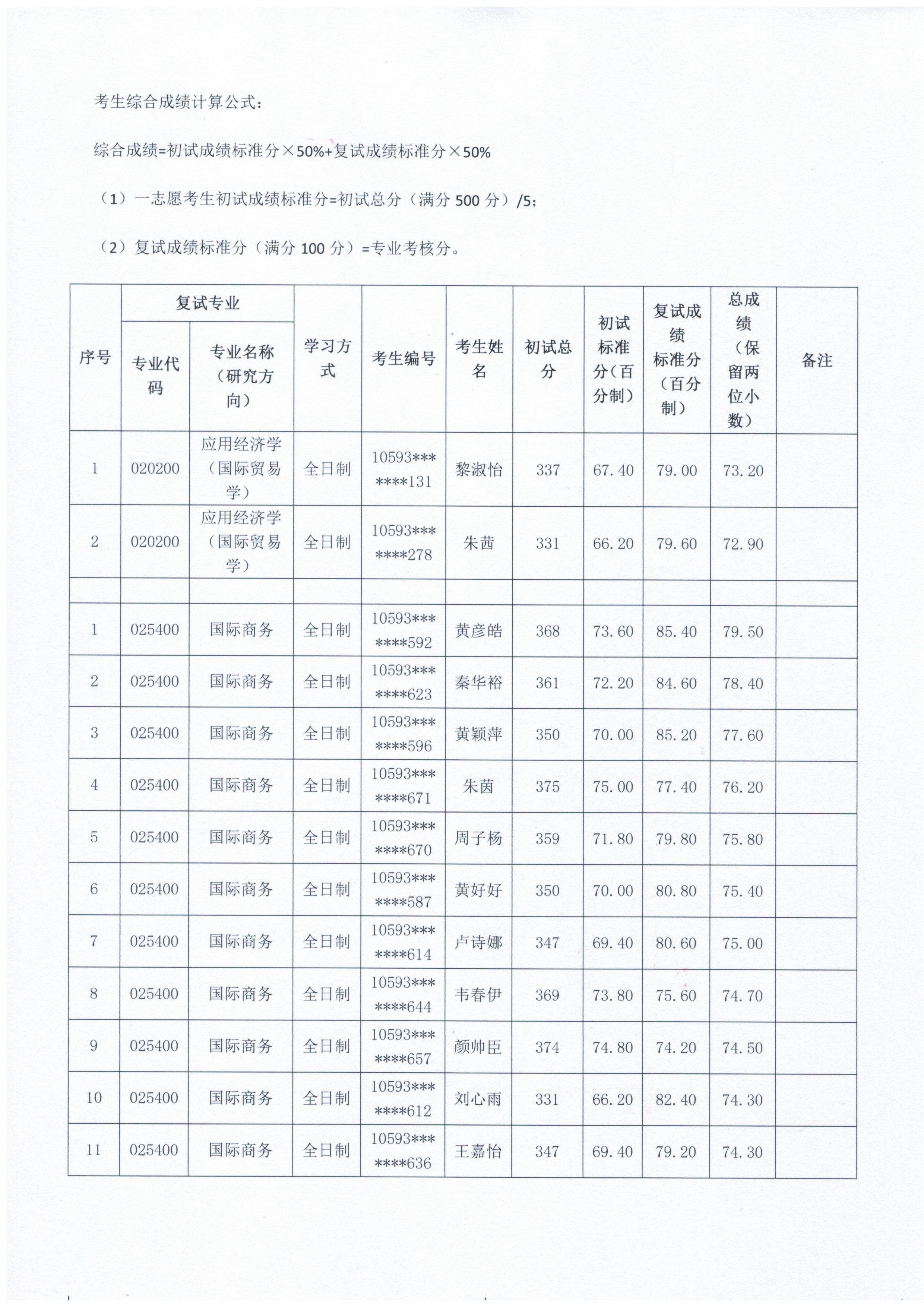 经济学院2026年硕士研究生一志愿考生复试成绩公示(三)