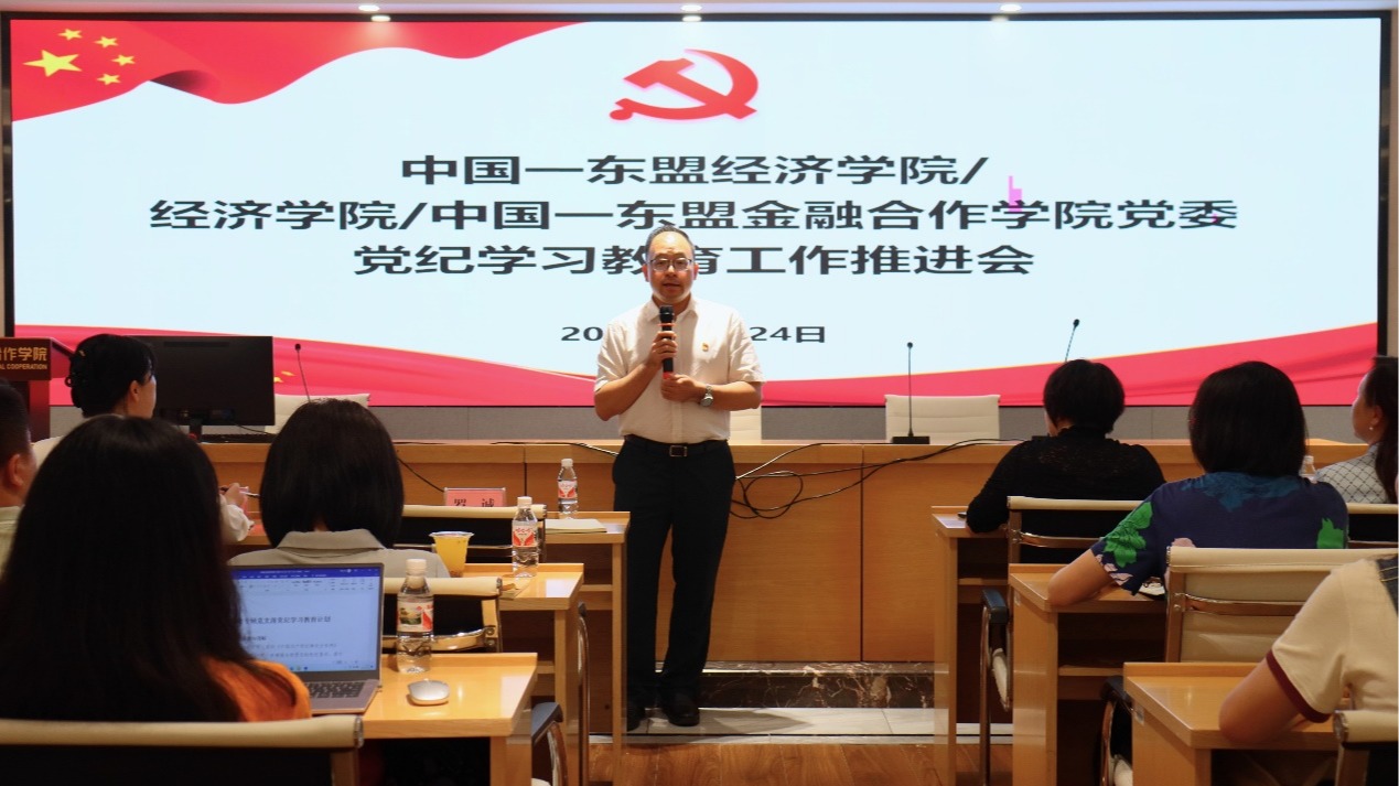 近日,英国365公司/经济学院/中国—东盟金融合作学院党委在学院101会议室召开党纪学习教育工作推进会。会议深入学习贯彻习近平总书记关于党纪学习教育的重要讲话和重要指示精神,认真落实党中央决策部署和自治区党委、校党委工作要求,进一步推进学院党纪学习教育走深走实。学院党委常务副书记罗诚参加会议并讲话,党委副书记、纪委书记陈卉娟主持会议,学院专职组织员、全体支部书记及部分支委参加会议。